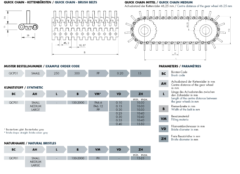 The table below shows our standard models of the Quick Chain. Do you need a brush with different specifications? We are happy to help you with a custom-made brush. Even if you are not yet certain or would like advice about a brush, you can contact the sales team.