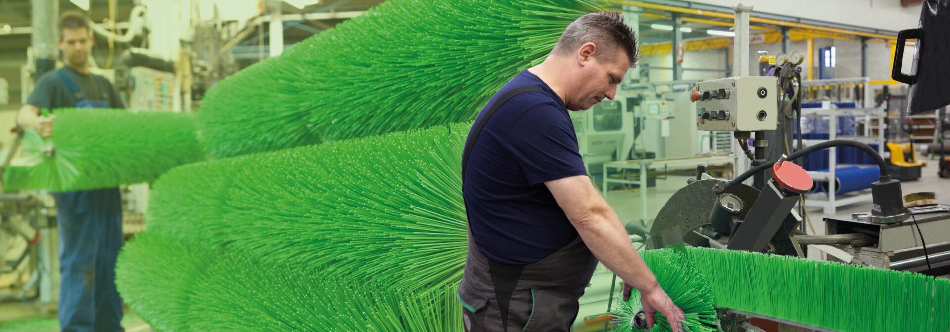 Harmen werkt op de stripafdeling waar hij met oog voor kwaliteit stripborstels produceert. Hij helpt ook af en toe mee op de stansafdeling, waar het kernmateriaal wordt voorzien van een boorpatroon zodat de borstelvezels er netjes in gestanst kunnen worden. Een typische werkdag bestaat volgens hem niet, omdat iedere dag anders is. “Ik maak borstels, werk ze af, snijd ze, of ondersteun collega’s met uitleg of inwerken. Ik ben vaak met verschillende machines bezig. Dat maakt het werk afwisselend.”